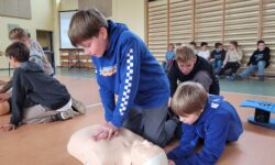 W czwartek, 16 października o godz. 12:00, uczniowie naszej szkoły dołączyli do ogólnopolskiej akcji organizowanej przez Wielką Orkiestrę Świątecznej Pomocy. Na sali gimnastycznej uczniowie klas młodszych i starszych wspólnie prowadzili resuscytację krążeniowo-oddechową (RKO), bijąc rekord w liczbie osób udzielających pierwszej pomocy w tym samym czasie! 💪 Całe wydarzenie poprzedziły zajęcia…