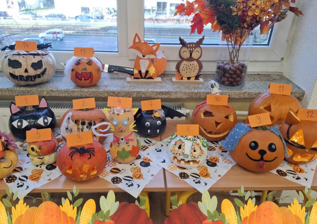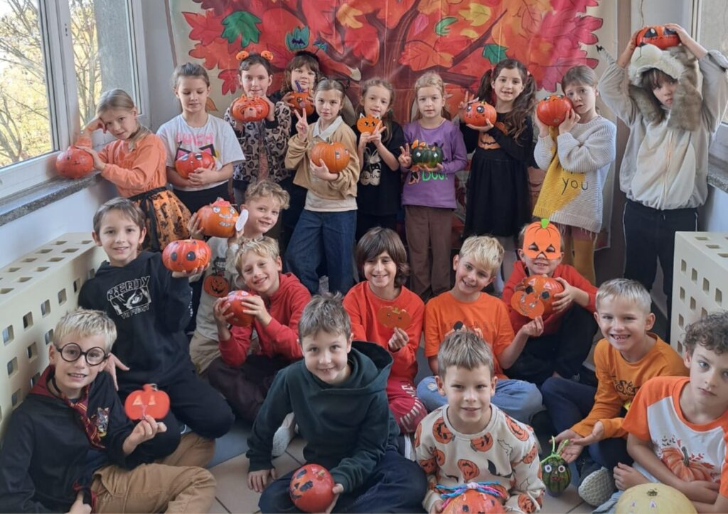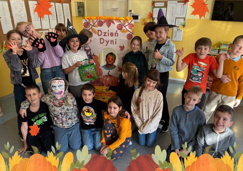 Pod koniec października w naszej szkole zrobiło się wyjątkowo kolorowo i jesiennie! Wszystko za sprawą obchodów Dnia Dyni. Tego dnia królowały pomarańczowe barwy – uczniowie i nauczyciele przyszli ubrani w stroje w odcieniach dyni, a szkolne korytarze i sale lekcyjne zamieniły się w prawdziwe jesienne krainy. Na szkolnych wystawach można było podziwiać różnorodne odmiany dyni, a także przepiękne dekoracje i prace plastyczne przygotowane przez uczniów.