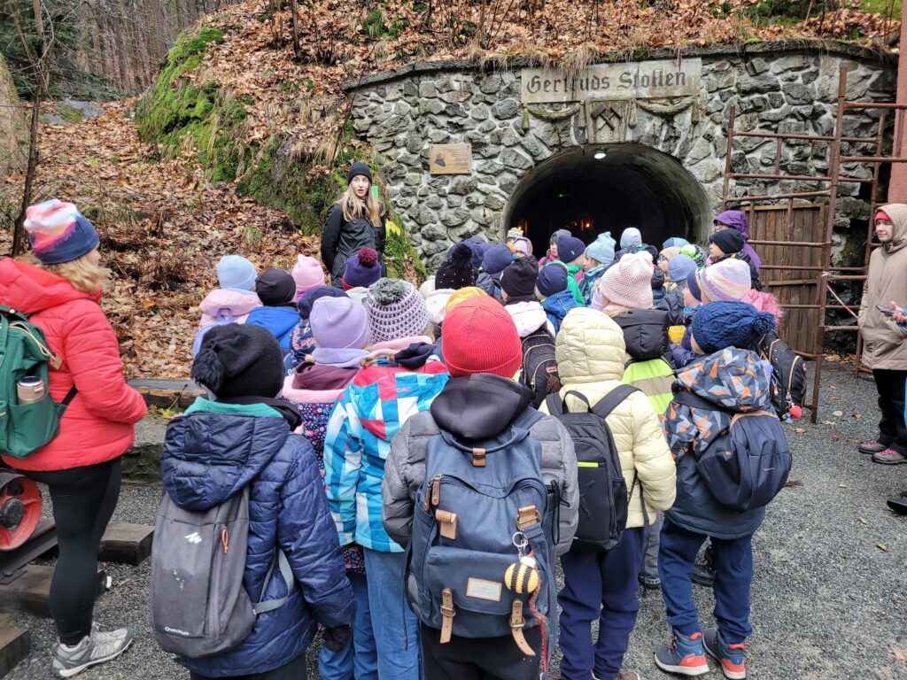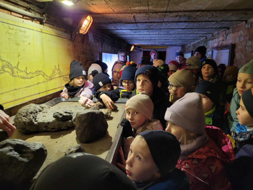 Kolejnym etapem była Średniowieczna Osada Górnicza, w której uczniowie mieli okazję przenieść się w czasie. Podczas pokazów zaprezentowano im dawne narzędzia i techniki wykorzystywane w górnictwie, a także codzienność ludzi żyjących w tamtych czasach. Ostatnim punktem wycieczki była Sztolnia Ochrowa, znana z niezwykłej kolorystyki skał. Zwiedzanie tej części kompleksu pozwoliło uczniom lepiej zrozumieć procesy geologiczne oraz zobaczyć naturalne zjawiska, które ukształtowały ten wyjątkowy fragment kopalni.
