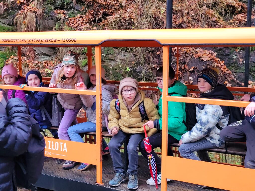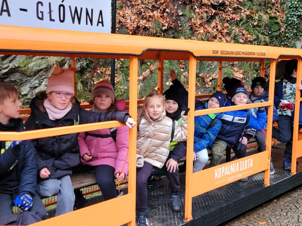 Pierwszym punktem programu było zwiedzanie Kopalni Złota, gdzie uczniowie przemierzali podziemne korytarze, poznając legendy związane z tym miejscem, dawne metody wydobycia kruszcu oraz ciekawostki dotyczące ciężkiej pracy górników. Dużo emocji wzbudził przejazd podziemną kolejką oraz możliwość zobaczenia unikatowych podziemnych komór.