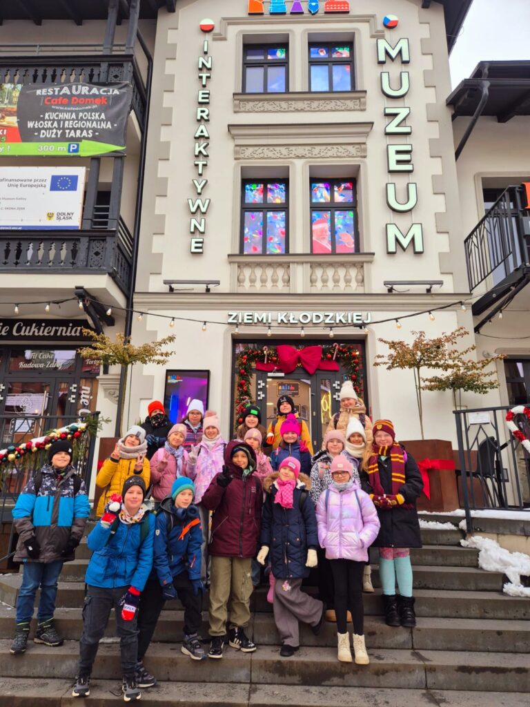 W piątek, 28.11.2025 r. klasy: 4B i 4F wraz z wychowawcami i opiekunami wybrały się na wycieczkę autokarową do Polsko-Czeskiego Muzeum Interaktywnego Ziemi Kłodzkiej, mieszczącego się w Kudowie-Zdroju. Głównym celem wyjazdu było wzbogacenie wiedzy historycznej i przyrodniczej uczniów na temat regionu, a także integracja zespołów klasowych poprzez wspólną zabawę i naukę w nowoczesnym, interaktywnym otoczeniu.