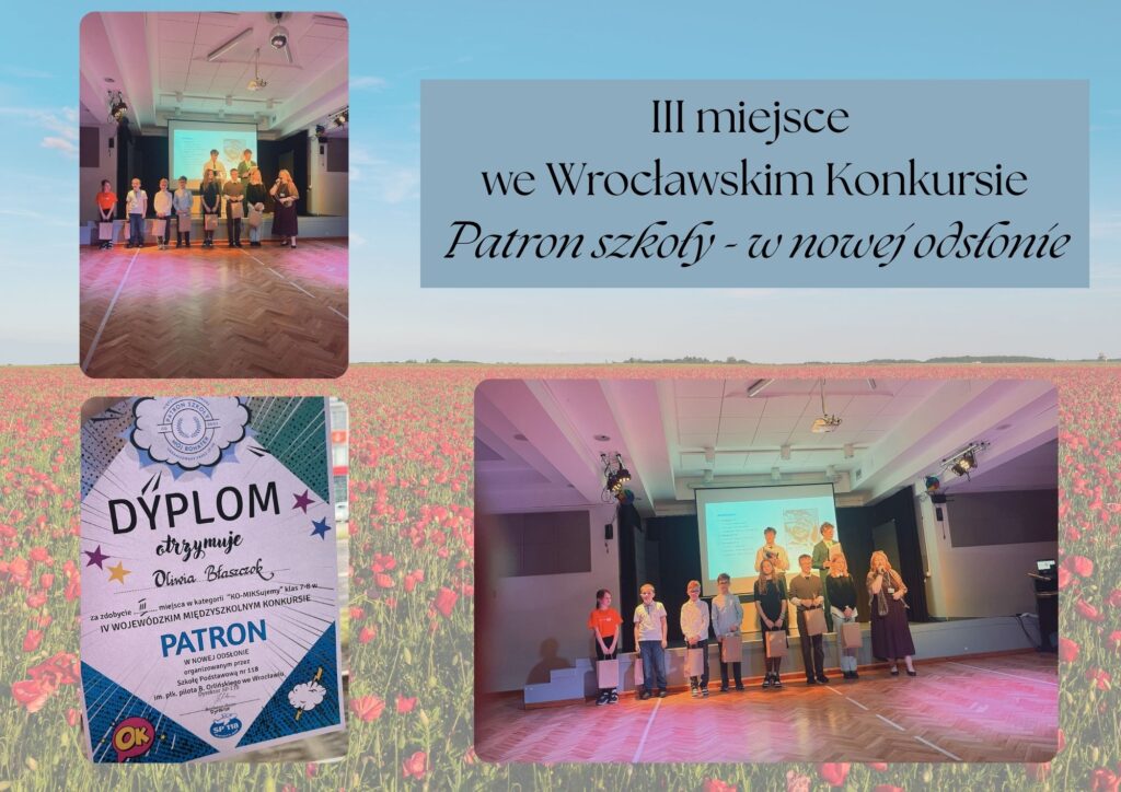 Z dumą informujemy, że Oliwia Błaszczok z klasy 7c została laureatką konkursu „Patron szkoły – w nowej odsłonie”, który cieszył się dużą rangą i zgromadził wielu utalentowanych uczestników z różnych szkół. Nagrodzona praca Oliwii miała formę komiksu przedstawiającego sylwetkę patrona naszej szkoły – generała Stanisława Maczka. Uczennica w ciekawy i pomysłowy sposób zaprezentowała historię oraz dokonania tej wyjątkowej postaci. Oliwia wzięła również udział w uroczystej gali rozdania nagród, podczas której odebrała wyróżnienie za swoją pracę.