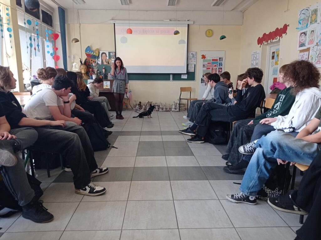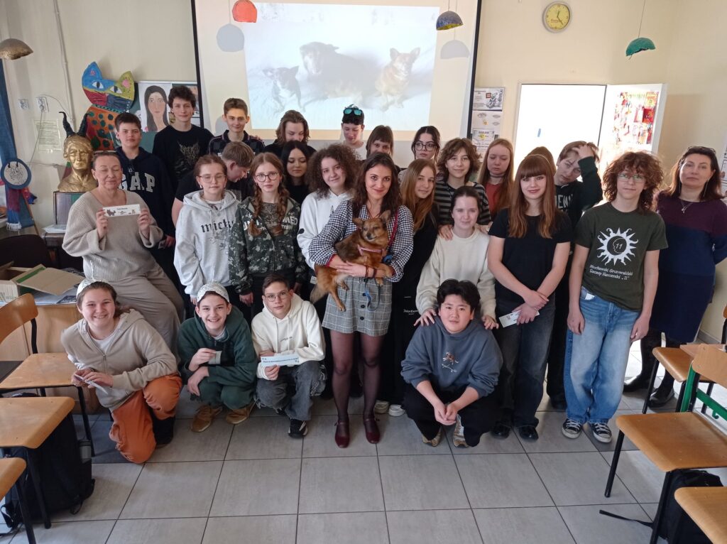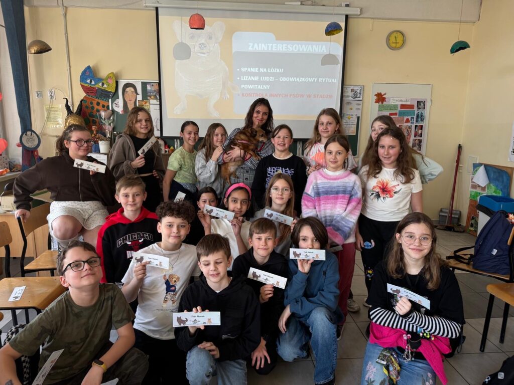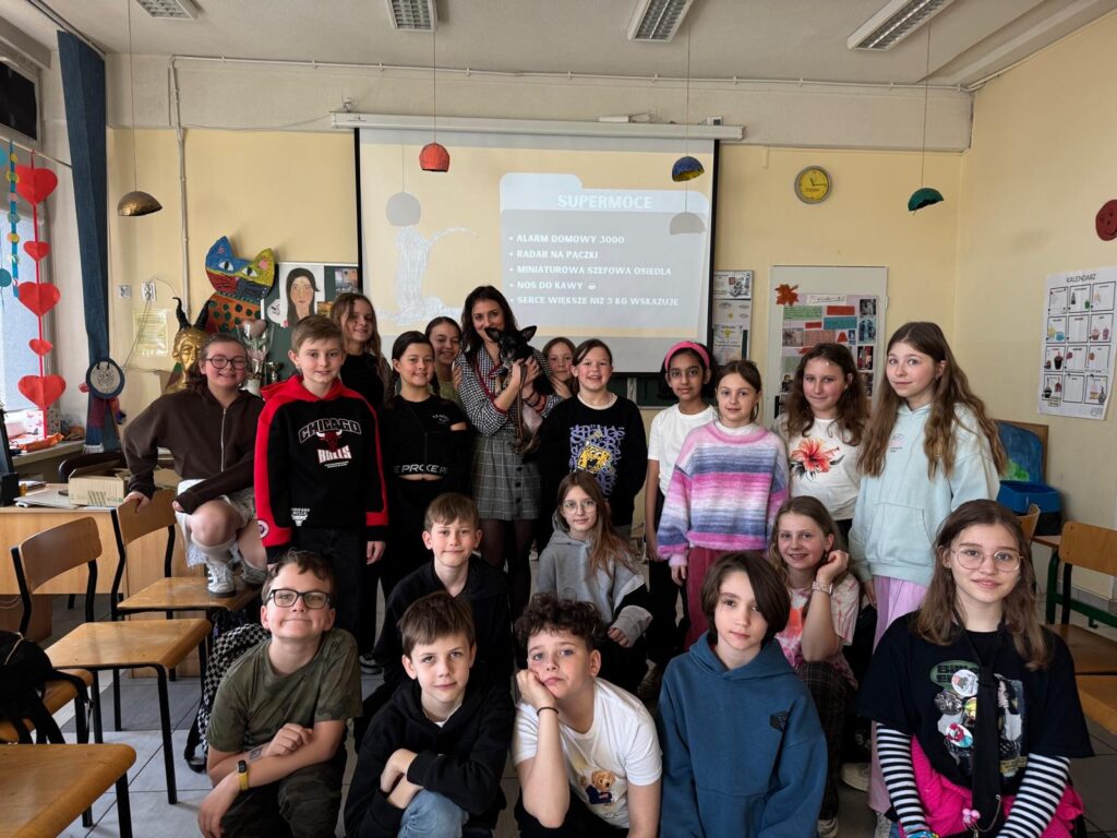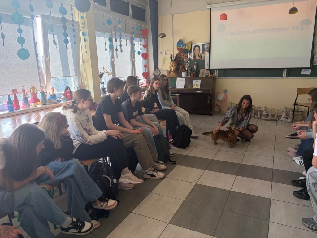 W klasach 7c, 8a, 4b oraz 6f odbyły się zajęcia z cyklu „Psiaki adopciaki”, będące inicjatywą pani Angeliki Zając. Tematem spotkań była opieka nad psem ze schroniska oraz specyfika adopcji zwierząt. Podczas zajęć uczniowie dowiedzieli się, czym jest adopcja, jakie mogą być różnice w charakterach psów adoptowanych oraz z jakimi trudnościami mogą spotkać się przyszli opiekunowie. Omówiono także liczne zalety adopcji i korzyści płynące z przygarnięcia psa ze schroniska. Głównym celem zajęć było uświadomienie uczniom, dlaczego warto adoptować psa oraz z jaką odpowiedzialnością wiąże się taka decyzja.Dużą atrakcją dla uczestników była obecność dwóch psów pani Angeliki – Fridy i Liska, które towarzyszyły podczas zajęć i pomogły lepiej zrozumieć omawiane zagadnienia. Po zajęciach wszyscy uczniowie otrzymali na pamiątkę zakładki do książki z ilustrowanymi psiakami.