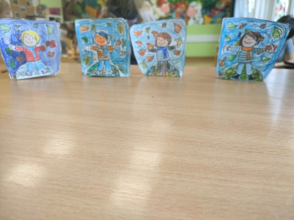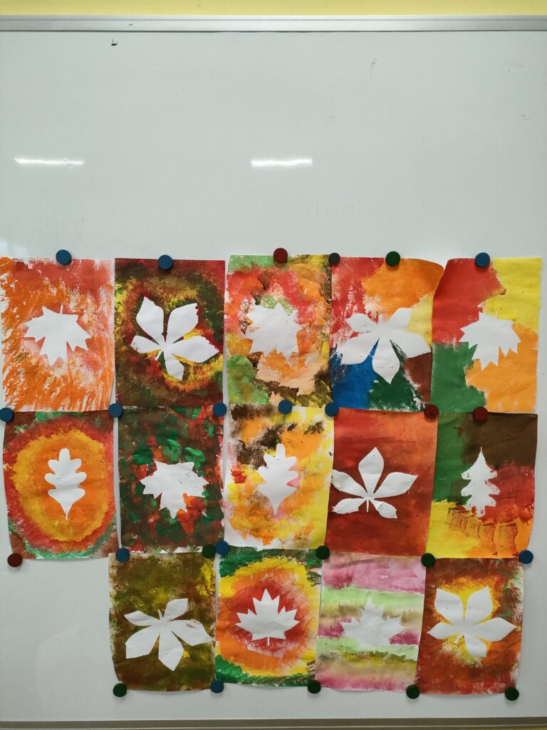 Podczas zajęć uczniowie z klasy 1b przenieśli się w barwny świat jesieni.