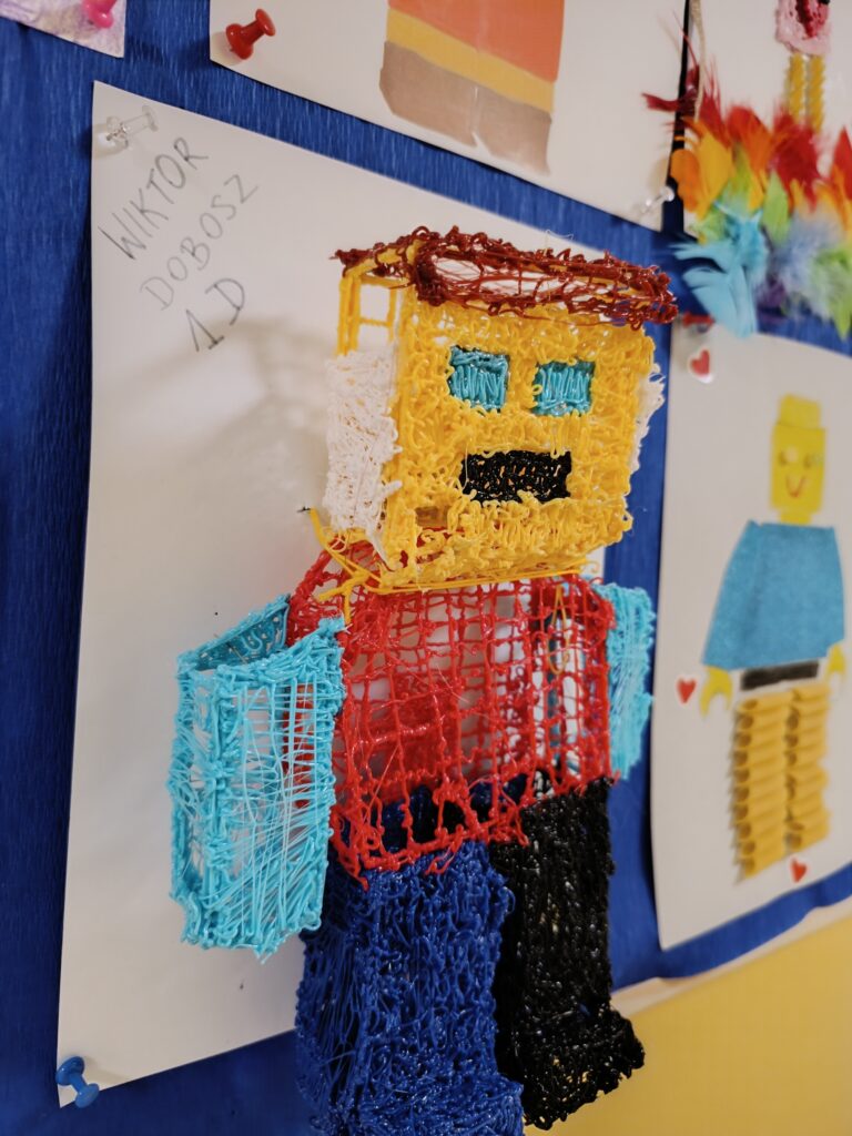 Uczniowie klasy 1b obchodzili Dzień LEGO, który dostarczył im twórczej zabawy. Podczas zajęć dzieci poznały historię klocków LEGO oraz dowiedziały się, skąd wzięła się ich nazwa i dlaczego są tak popularne na całym świecie. Następnie uczniowie wykazali się kreatywnością, projektując własnego ludzika LEGO. Każda praca była wyjątkowa i odzwierciedlała pomysłowość oraz wyobraźnię dzieci.