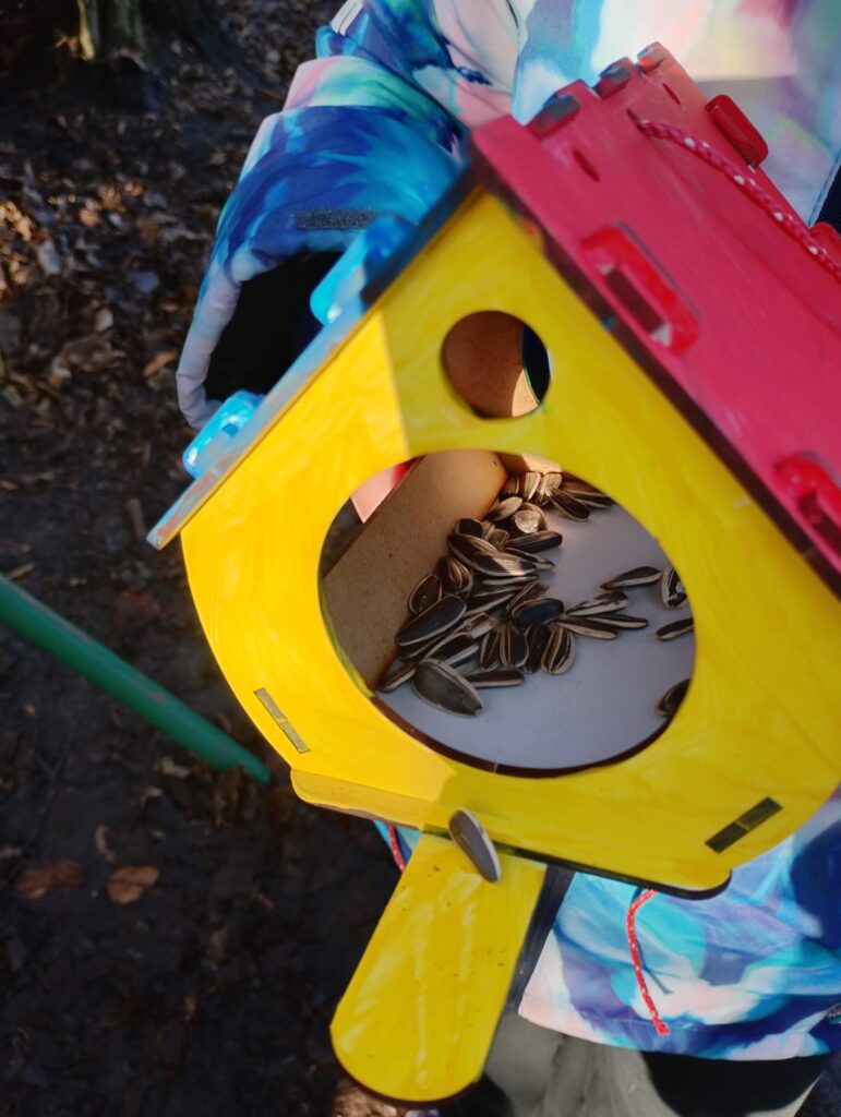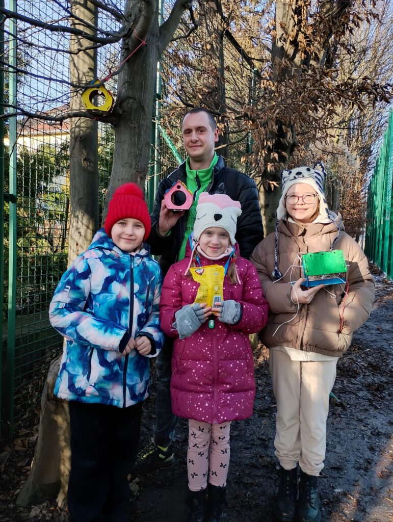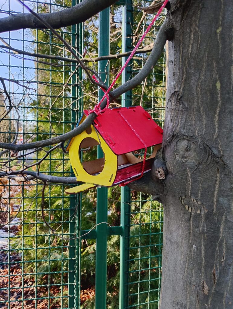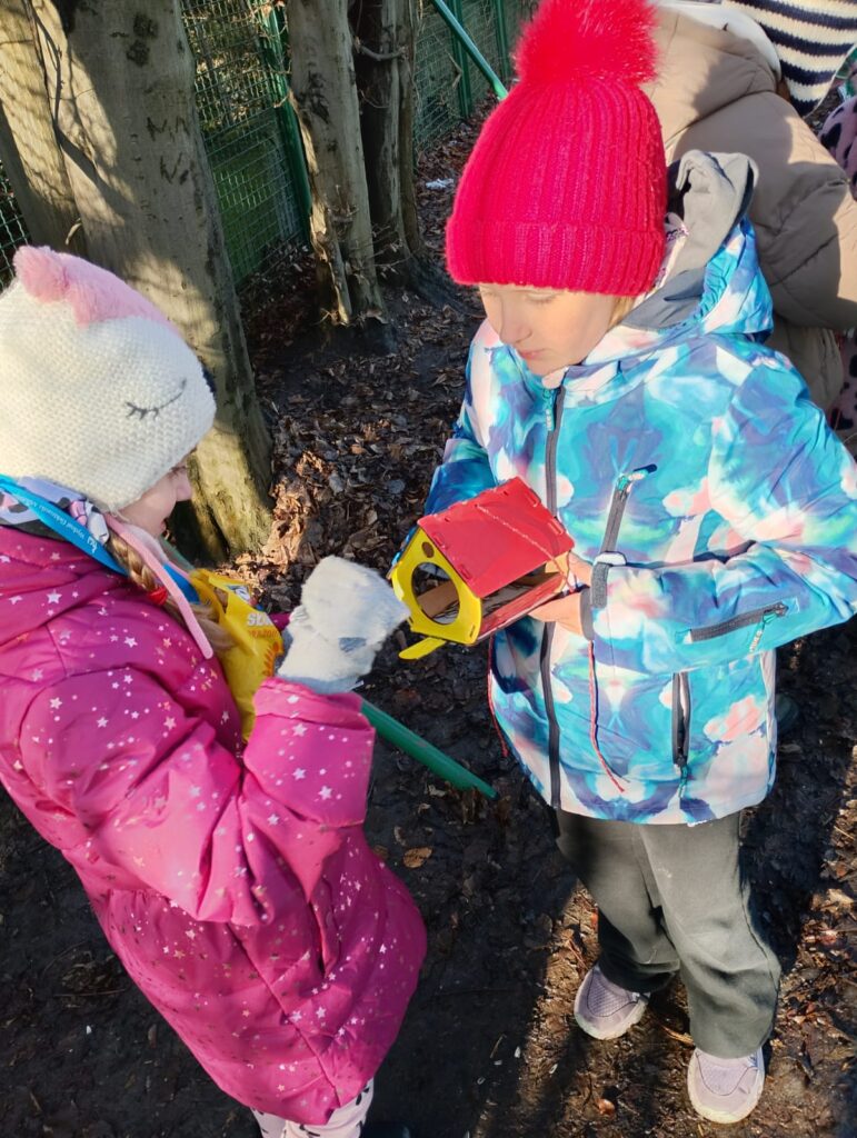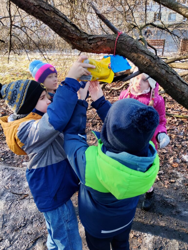 Klasa 2B wraz z nauczycielem zamontowała na podwórku szkolnym trzy karmniki dla ptaków w różnych miejscach (które wcześniej zrobiliśmy podczas zajęć świetlicowych). Zachęcamy, aby dzieci czasami nasypały do nich karmę, szczególnie teraz zimą.