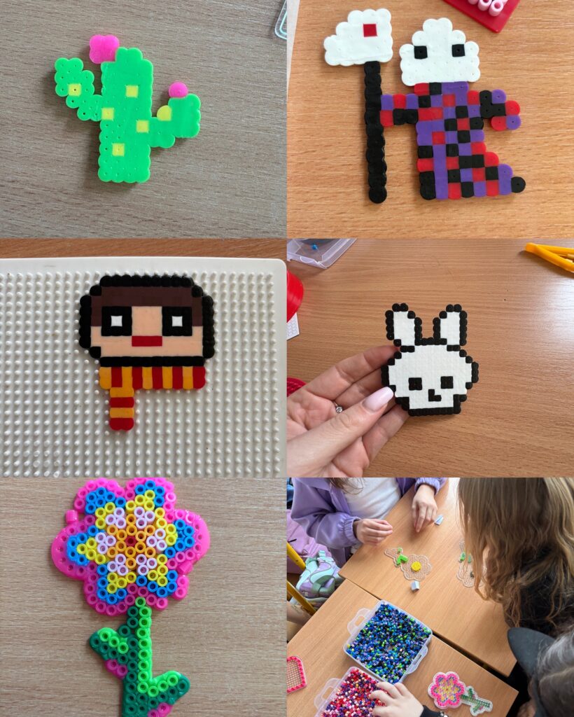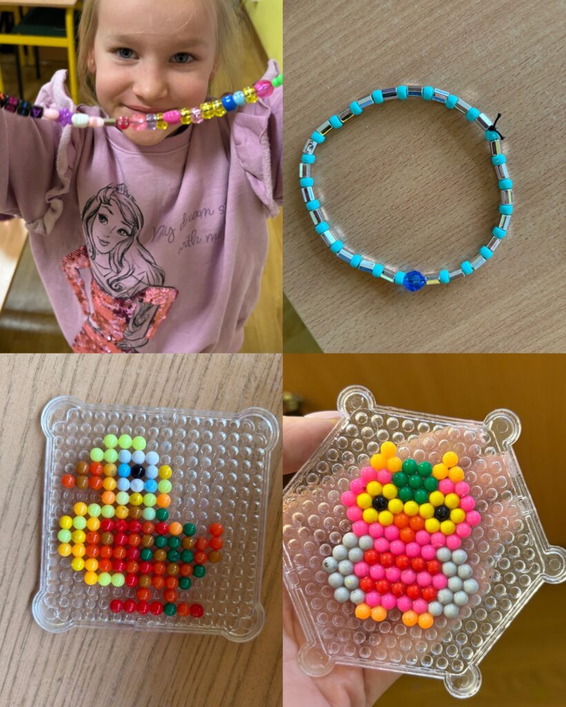 Zajęcia wspierające motorykę małą w klasie 1D – szycie, tworzenie z magicznych koralików.