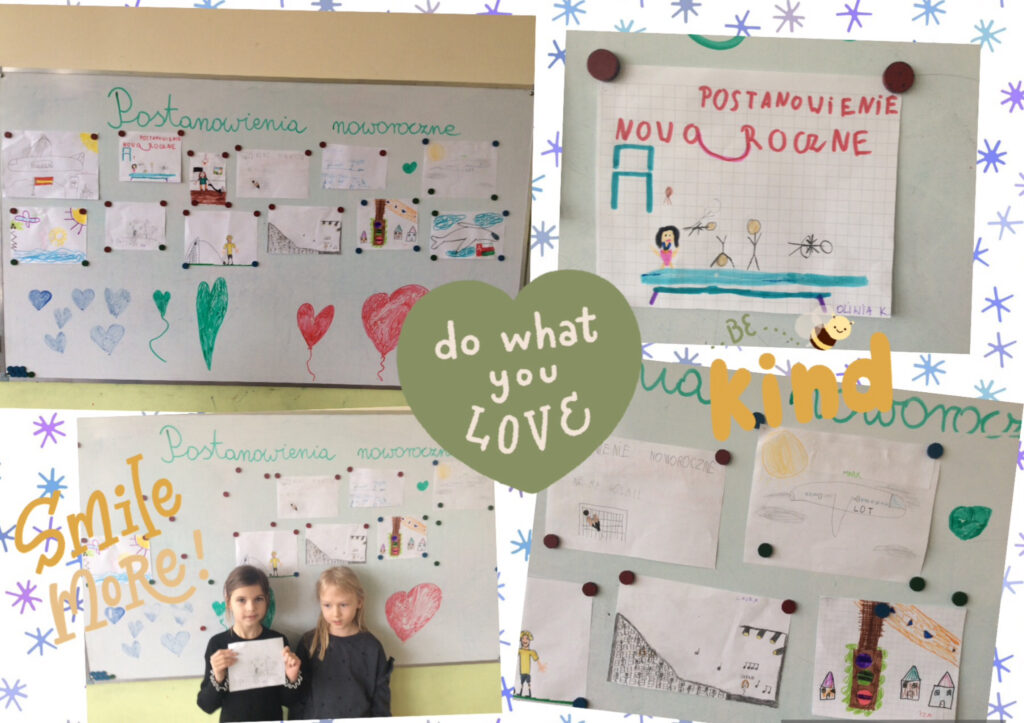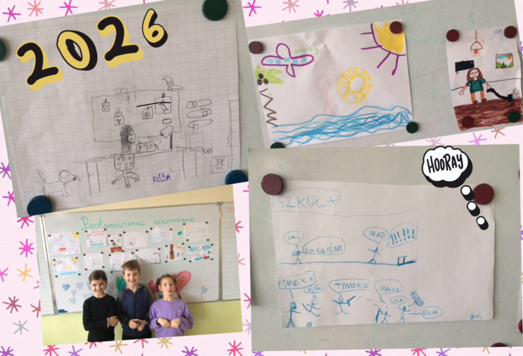 Nowy Rok to idealny czas, aby stworzyć listę noworocznych postanowień. Na pierwszych styczniowych zajęciach świetlicowych uczniowie z klasy 3d rysowali swoje noworoczne postanowienia. Świetliczaki 👫z klasy 1f zgadywały, co postanowili ich starsi koledzy. Powstały kreatywne prace i przepiękne wypowiedzi👏.