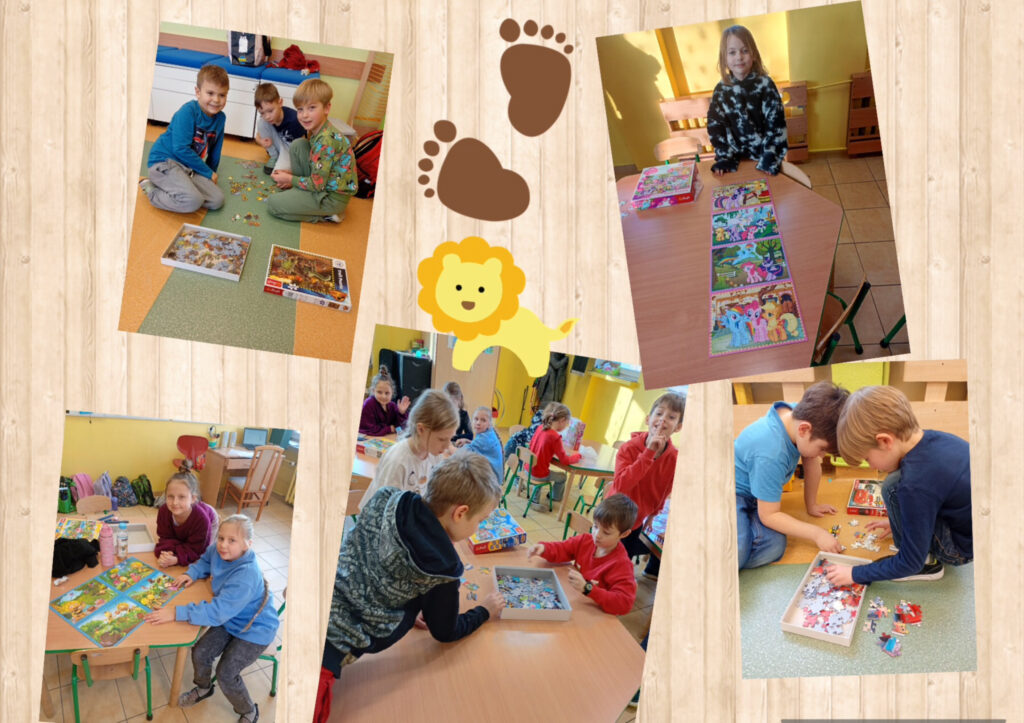 . Pierwszym noworocznym zadaniem w ramach realizowanego przez klasy 1f oraz 3d Ogólnopolskiego Projektu Edukacyjnego „Kreatywne Dni Nietypowe” było wspólne układanie ulubionych puzzli