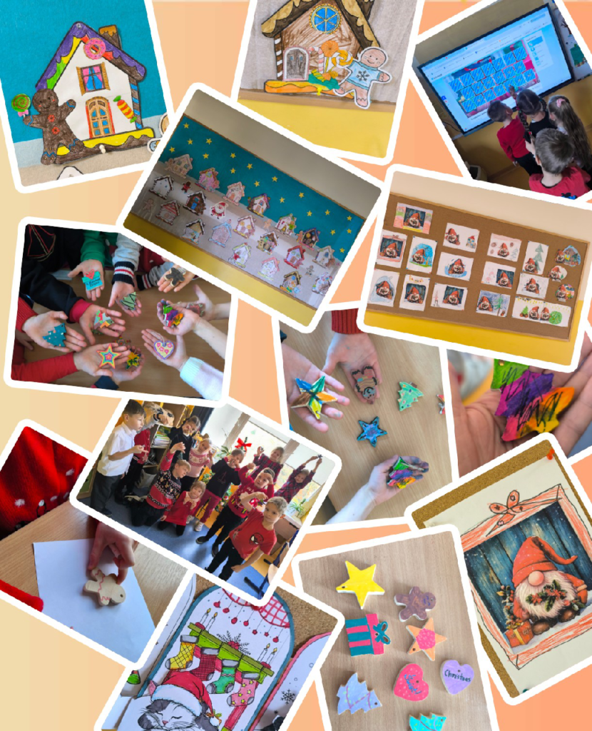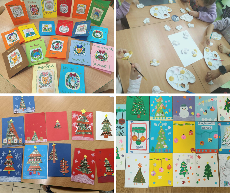 W świetlicy szkolnej, dzieci własnoręcznie przygotowały piękne kartki świąteczne oraz aniołki z gipsu dla Seniorów z Domu Pomocy Społecznej. Było dużo kolorów, uśmiechów i przede wszystkim dobrych myśli, które mali artyści włożyli w każdą pracę.