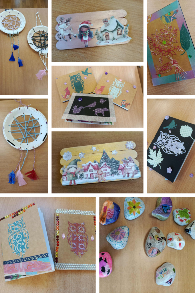 Listopad na zajęciach pomysłodzielni był pełen kreatywnych pomysłów i twórczej pracy. Podczas zajęć tworzyliśmy kolorowe łapacze snów, świąteczne magnesy na lodówkę, kamienie życzliwości oraz własnoręczne notesy.