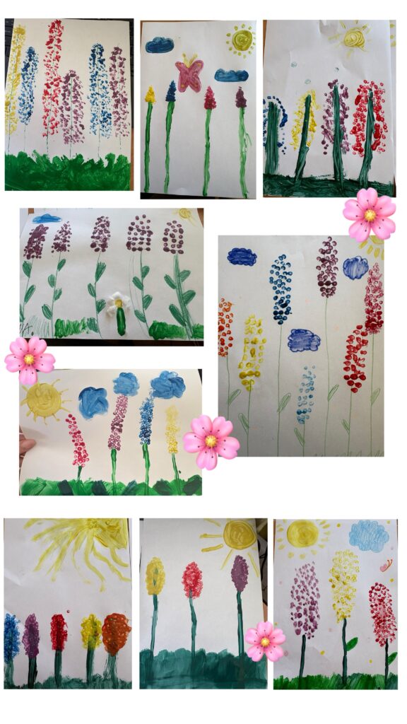 Prace wykonane przez dzieci uczęszczające na zajęcia plastyczne „Bazgroludki”.