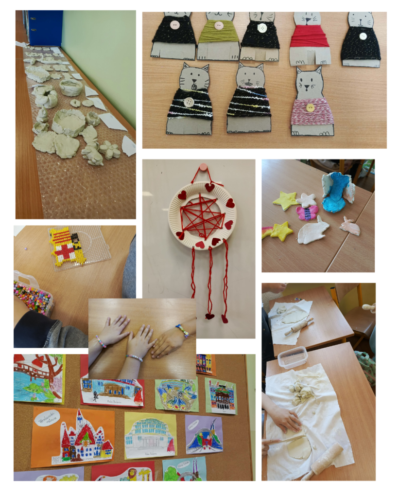 Artystyczne aktywności klasy 1D – tworzenie z gliny, zimowe prace plastyczne.