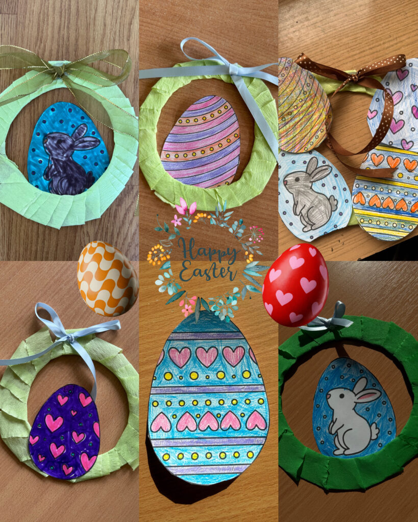 Klasa 1D przygotowuje sie do Świąt Wielkanocnych tworząc wianki z pisankami.
