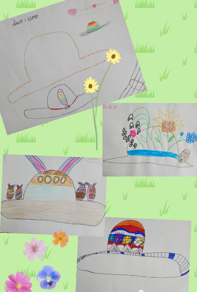 Często podczas nieobecności nauczyciela prowadzącego klasa ma zajęcia świetlicowe z różnymi nauczycielami, którzy z zaangażowaniem realizują z dziećmi różnorodne aktywności. W drugim tygodniu kwietnia klasy 1b oraz 1e zainspirowane słuchowiskiem pt.,, Wiosenny czepiec”’ zaprojektowały przepiękne kapelusze.